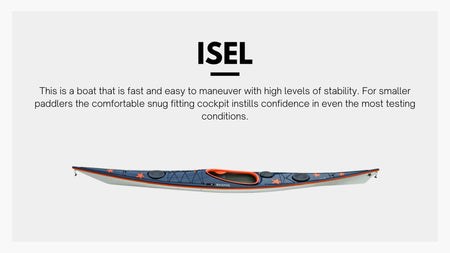 The design philosophy behind the ISEL was to provide a boat designed to fit the smaller paddler with a snug fitting cockpit, excellent handling and enough speed to keep up with the group on the water. The ISEL has an updated deck layout and though the deck has been lowered to give a better cockpit fit, it still has a good load carrying capacity. The hull has been updated to improve handling yet further.