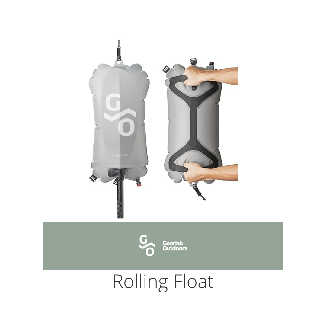 Gearlab Outdoor’s Rolling Float also doubles as an inflatable paddle float that will fit both a Greenland (narrow) or Euro (wide) style paddle for a standard self-rescue maneuver.